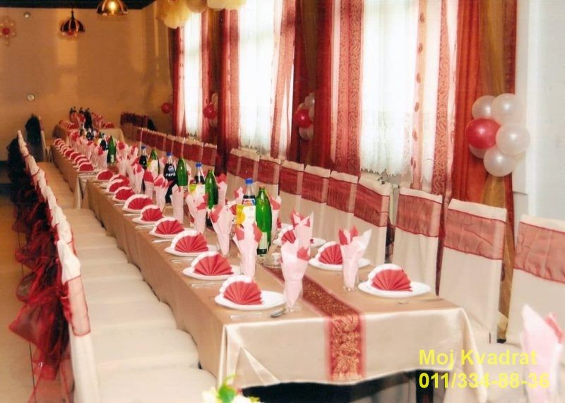 U restoranu postoje dva svečana salona, pojedinačnih kapaciteta od 220 mesta i 80 mesta koja se, po potrebi, efikasno spajaju u jedinstvenu celinu.