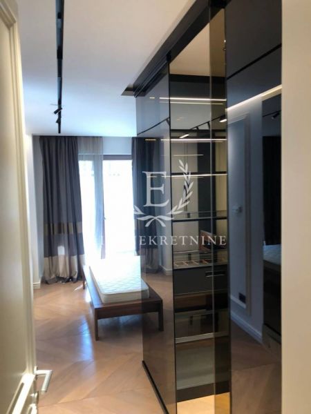 Izdaje se prelep, moderno i kvalitetno opremljen stan u luksuznoj novogradnji, površine 130 m². Stan se sastoji od prostranog dnevnog boravka u sklopu trpezarije, kompletno opremljene kuhinje, tri spavaće sobe, dva kupatila i posebnog toaleta, kao i terase koja pruža mir i komfor. Opremljen je vrhunskim nameštajem i tehnikom, sa pažljivo biranim detaljima i savršenim rasporedom prostorija. U cenu je uključeno i garažno mesto. Nalazi se u jednoj od najtraženijih lokacija u Beogradu – kod Hrama Svetog Save, u blizini svih potrebnih sadržaja, restorana i prodavnica. Stan se izdaje isključivo na duži vremenski period.