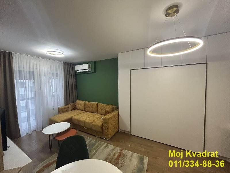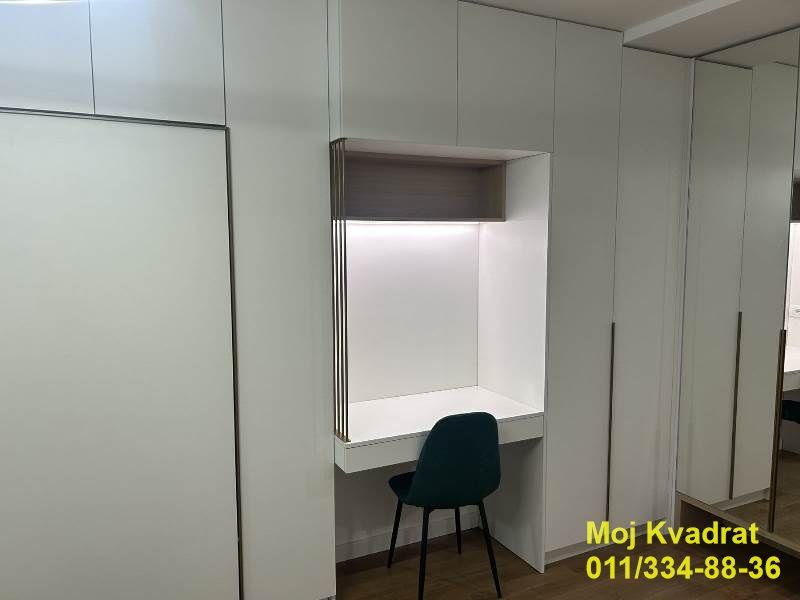 Enterijer je pažljivo osmišljen i maksimalno iskorišćen. Prostrana dnevna soba povezana je sa trpezarijskim delom i moderno opremljenom kuhinjom, Pored udobne garniture na razvlačenje, stan poseduje i veliki bračni krevet integrisan u garderober, kao i radni sto uklopljen u ormanski prostor. Kupatilo je novo sa walk in tuš kabinom i veš mašinom.