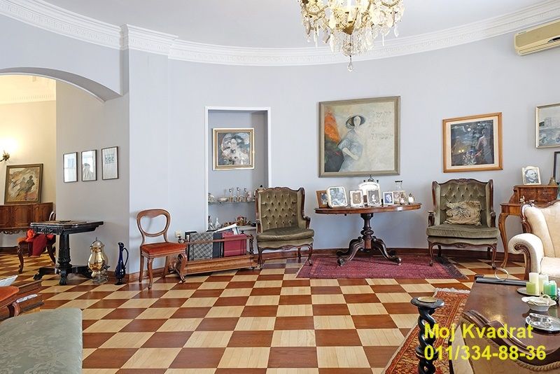 Izdaje se izuzetan višesobni salonski stan u samom centru grada u raskošnoj salonskoj zgradi. Trostrano je orijentisan.