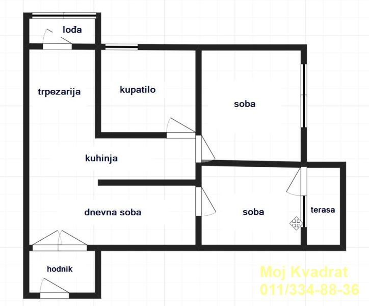 Stan se sastoji od ulaznog hodnika, dnevne sobe sa trpezarijom, kuhinje, dve spavaće sobe, kupatila, zastakljene lođe i terase. Stan ima pripadajući podrum.