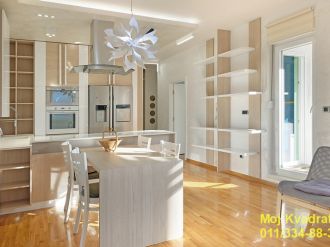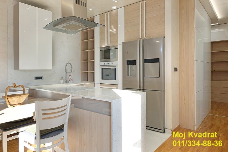 Stan se sastoji od prostrane dnevne sobe sa kuhinjom i trpezarijskim delom, tri spavaće sobe, kupatila, toaleta, garderobera i terase koja se greje i koja se po potrebi otvara. U stanu je opremljena moderna kuhinja sa uređajima od kojih su neki još u garanciji, ugradni plakari i sav stolarski nameštaj rađen po meri.
