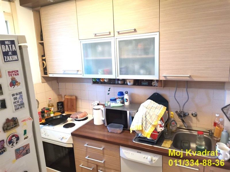 Prostor je maksimalno iskorišćen i funkcionalan u stilu najbolje socijalističke gradnje i sastoji se od hodnika, prostrane dnevne sobe, kuhinje, trpezarije, velike spavaće sobe, kupatila i lođe od 5m2. Stan ima pripadajuću podrumsku prostoriju.